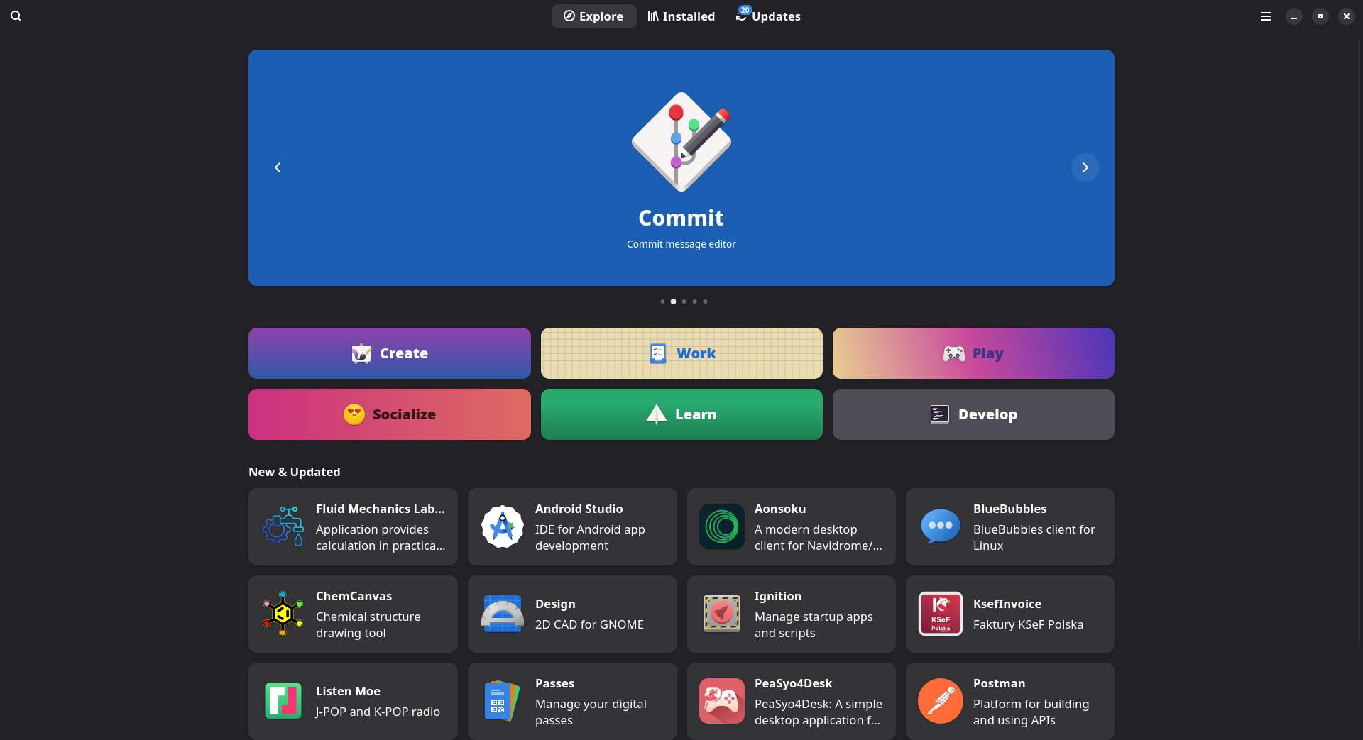 - Flatpak: رائع لتجربة تطبيقات حديثة جداً لا تتوفر في مستودعات ديبيان، أو تطبيقات تتطلب بيئة جنوم أحدث من التي تملكها.